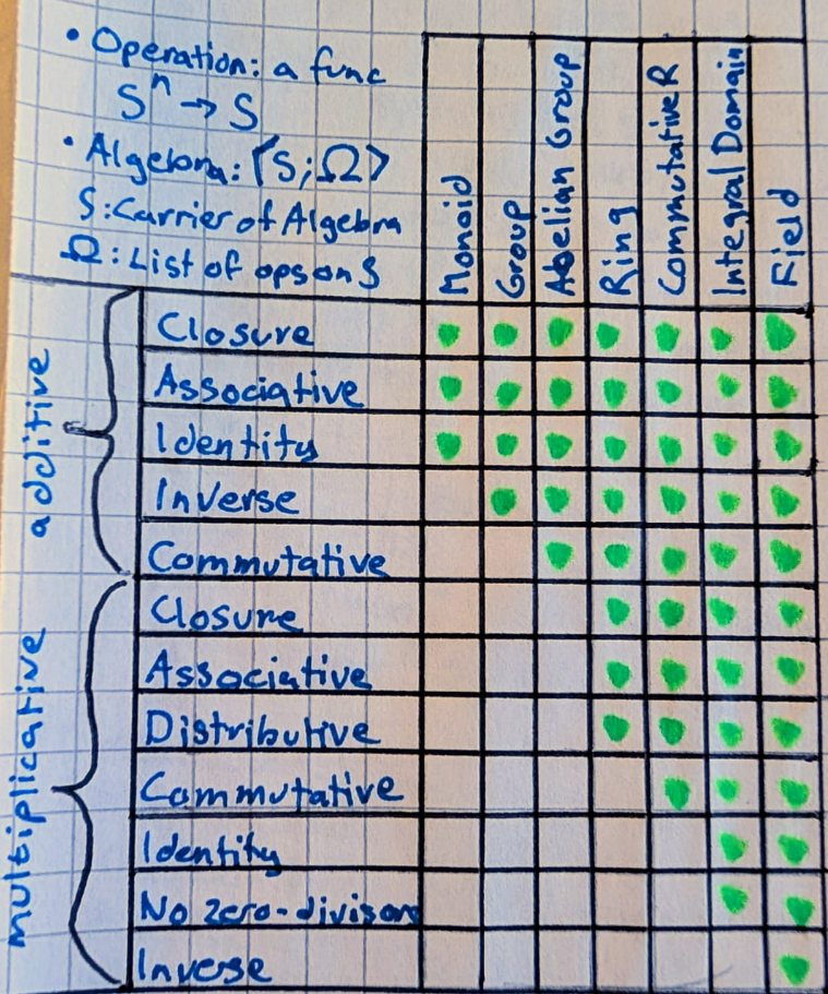 | Integral Domain | — | — | ✓ | ✓ | — | — | ✓ | ✓ | — | ✓ | ✓ |