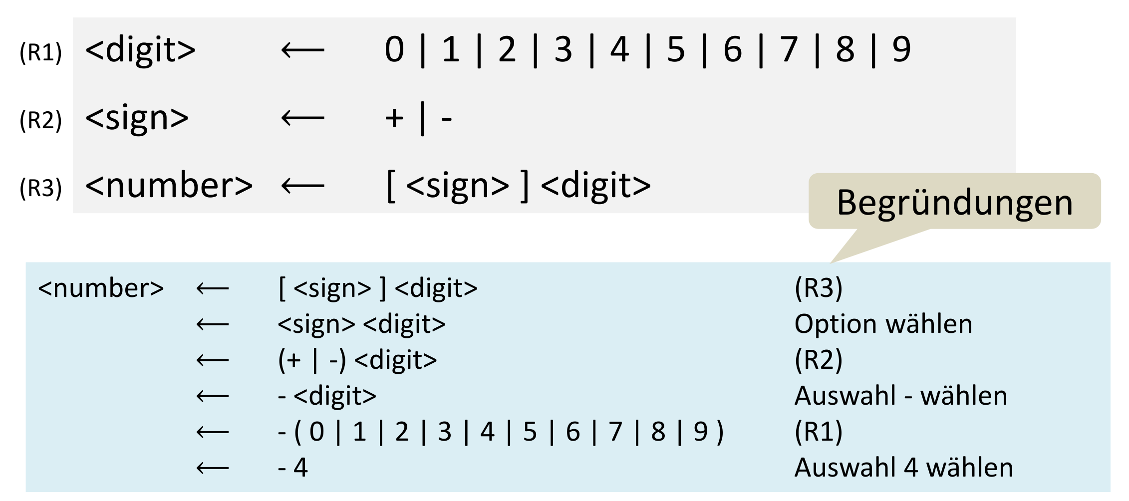 Es gibt immer eine Start Regel (letzte wenn nicht explizit) von der aus ersetzt wird.