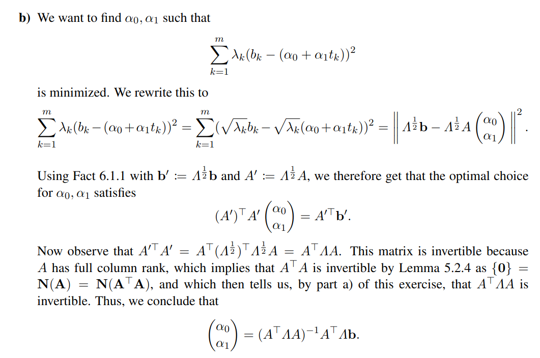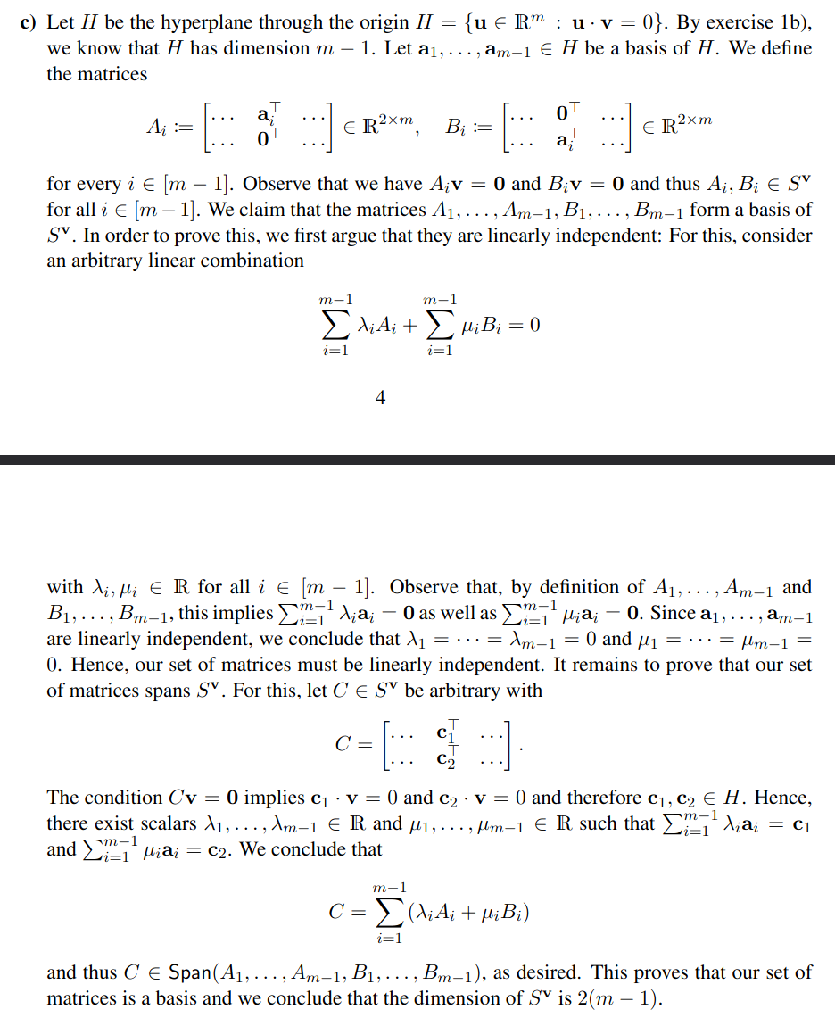 HS23 Proofs I c) has us show that there exists a such that … We can add a row of 1s to the bottom of the solution matrix which makes them linearly dependent in and thus there is a solution for .