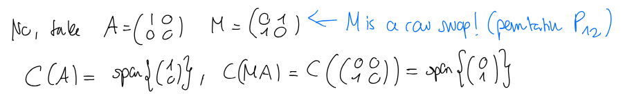 This works because as noted before, multiplying by and invertible matrix M does not change the row-space of MA on the left.