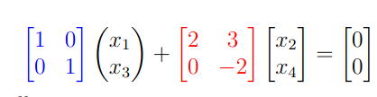 As on the left we have the identity, we reduce it to just the x vector, which gives us a system in two equations and 4 unknowns.