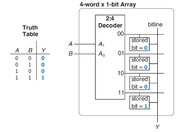 Each address then corresponds to the function inputs, and in each -bit cell, the output of the function table is stored.