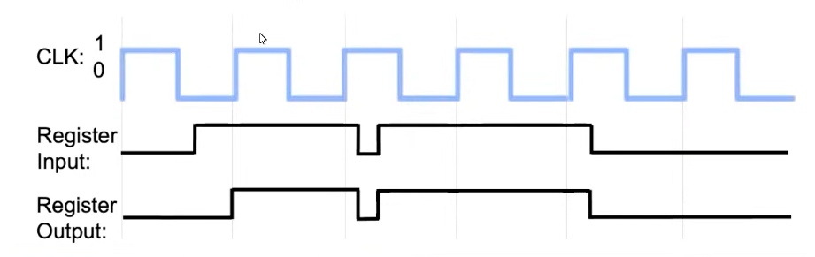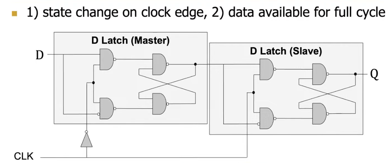 - Samples the input (D) only at the beginning of the clock cycle (e.g., on the rising edge).