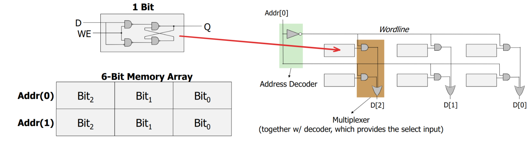 We can arbitrarily expand this, to support more address space. We just have to expand the decoder and multiplexer and add more bit cells.