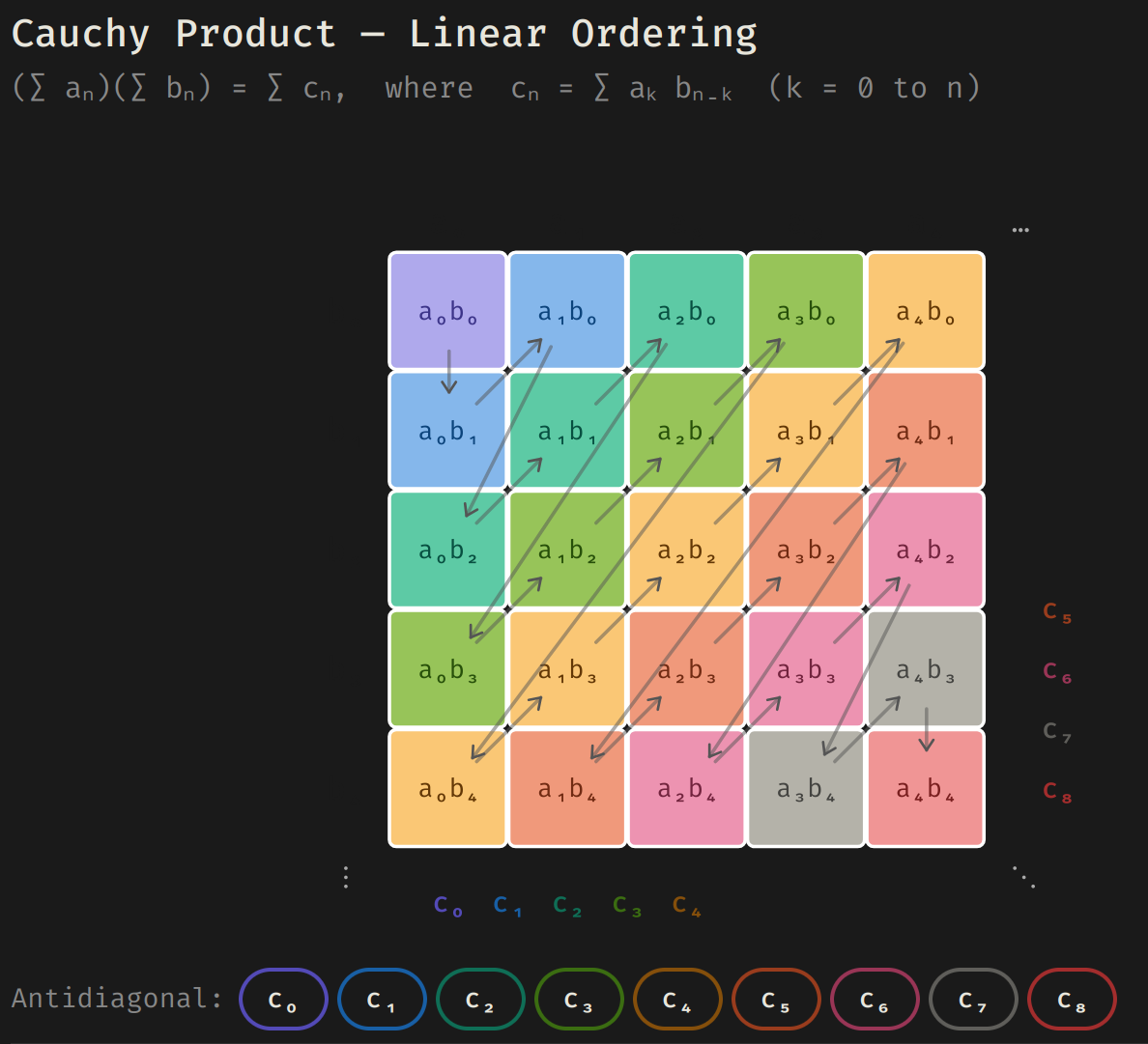 Das Cauchy-Produkt legt eine spezifische lineare Ordnung (Folge die alle Terme enthält) fest:
